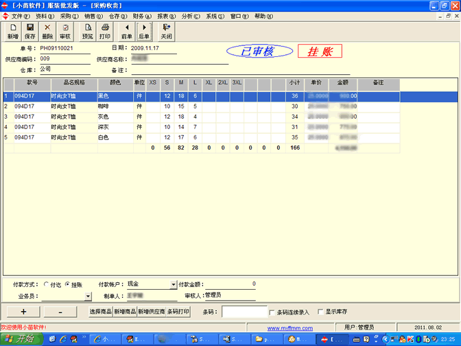 11、提供营销及财务两级审核过帐功能,有效控制物和钱流去向。