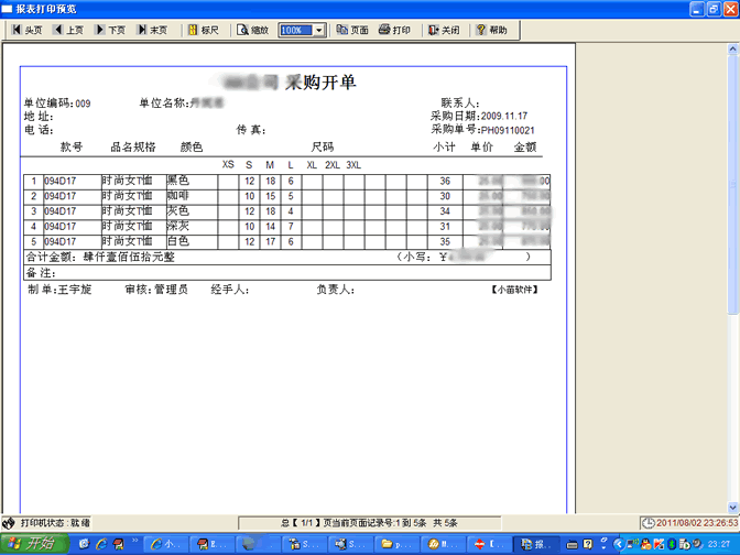 14、单据打印系统自动按“尺码类型”分组,有效地节约纸张并易于浏览习惯和按尺码类别存放及取货配货。